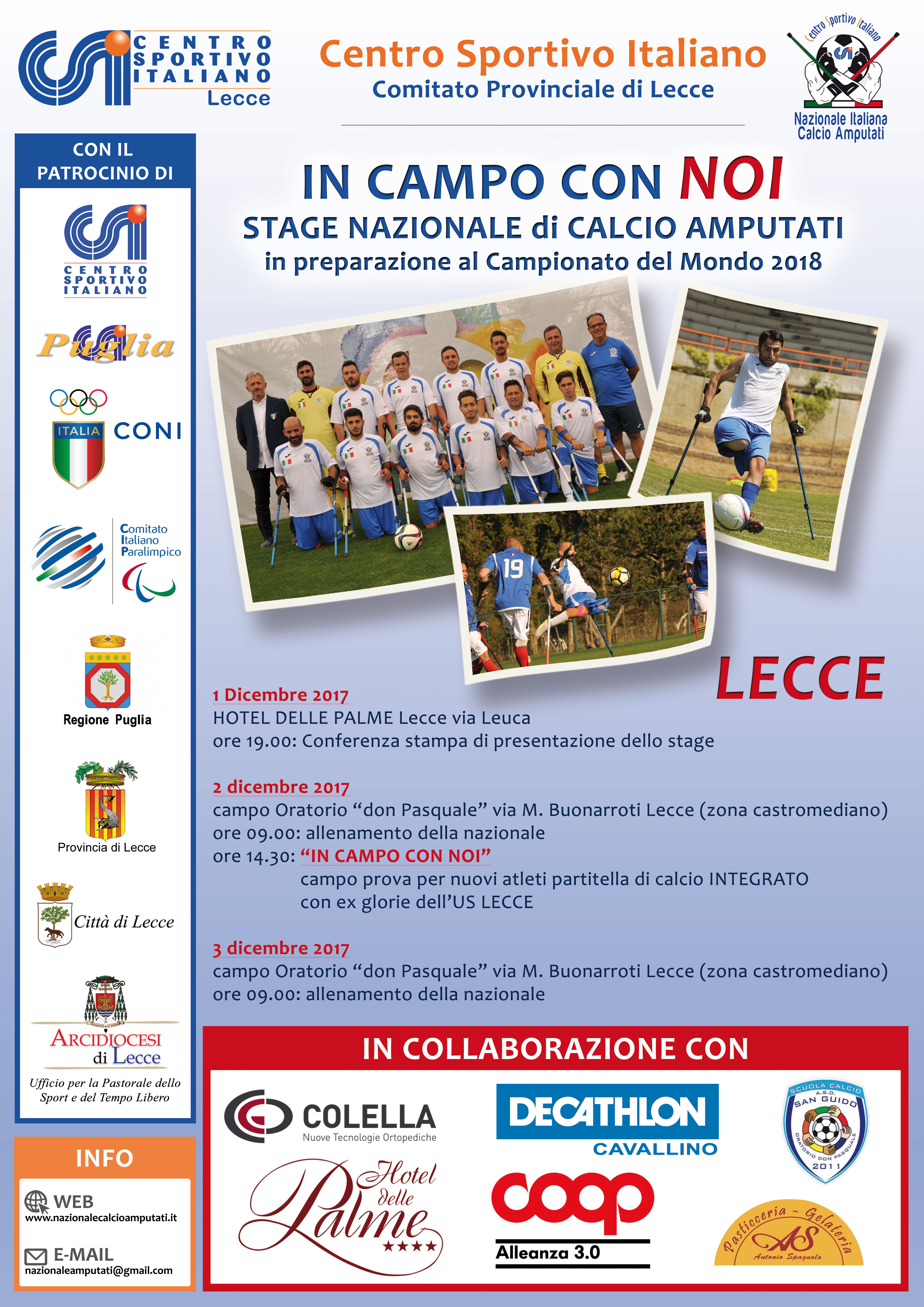 Lecce, 1 dicembre 2017 – E’ ormai fatta per la visita della Nazionale Calcio Amputati, che il